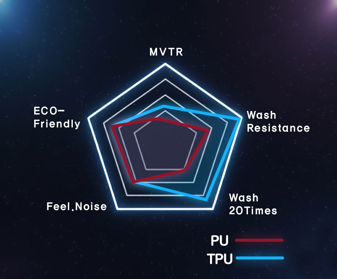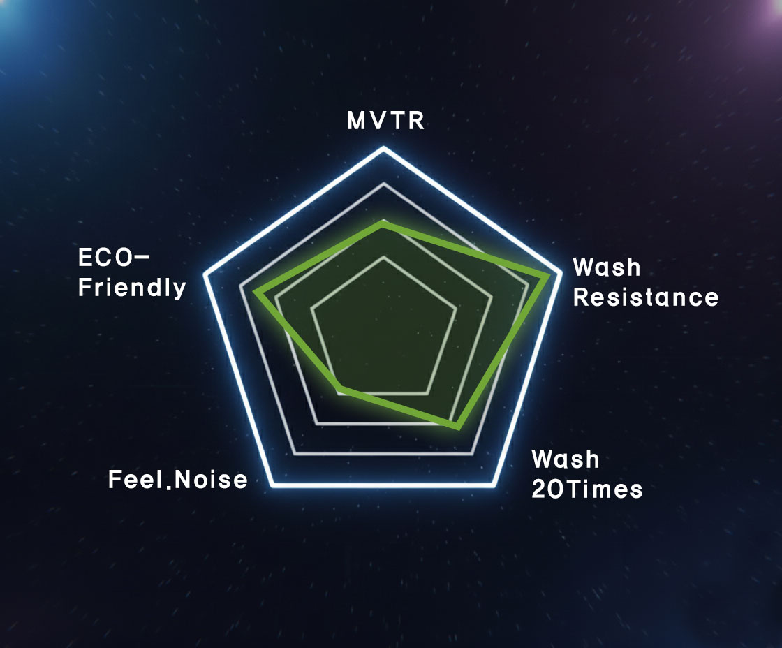 - 뛰어난 MVTR 및 W/P 값, 반복 세탁 후에도 유지되는 W/P 내구성
